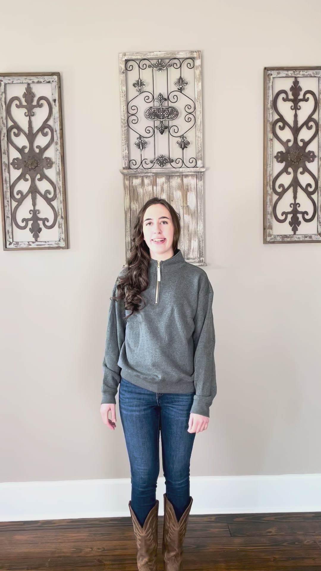 This fleece sweatshirt is perfect for those active, busy days. It is warm and cozy yet doesn't leave you sacrificing any of your style. The half zip up also makes it extremely easy to slide on and off.